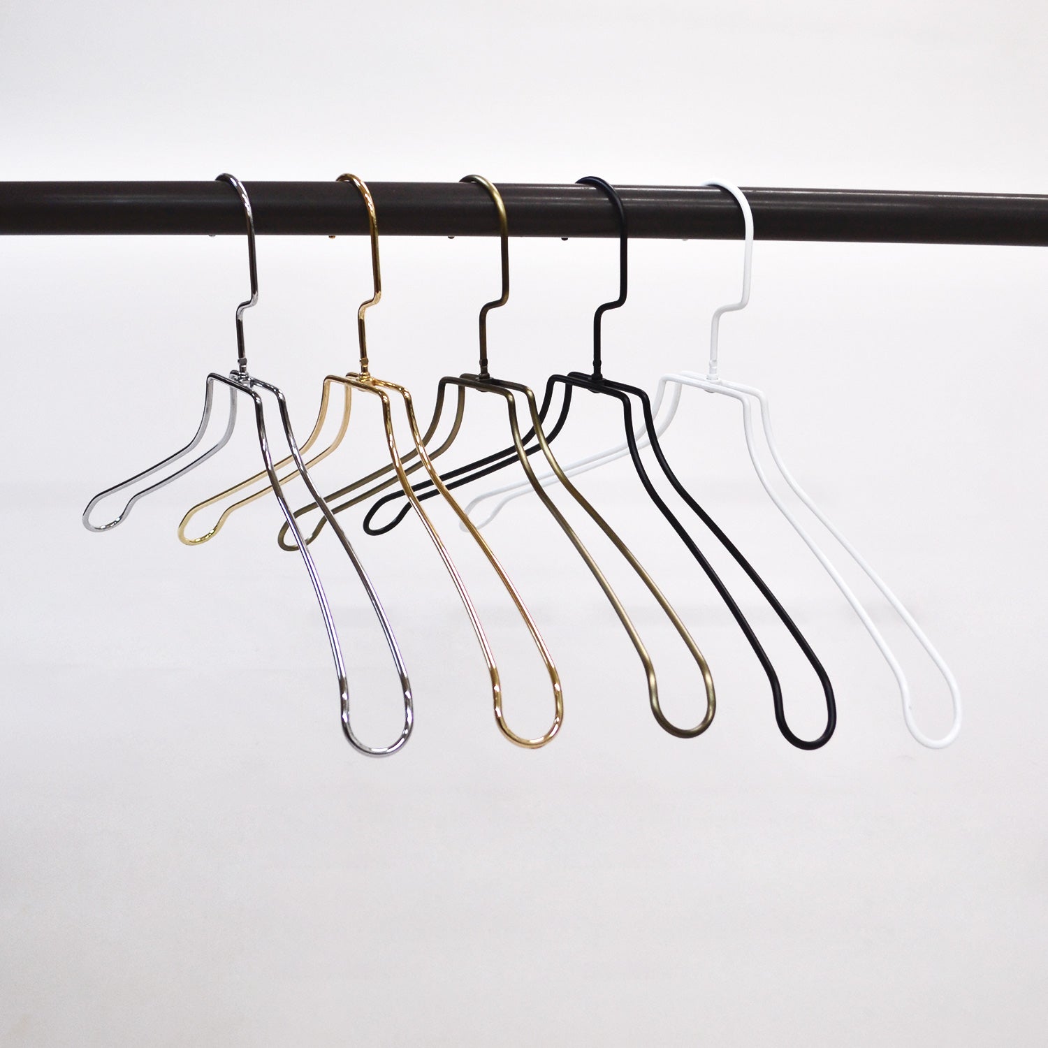 通常のフックより高さを確保しており、全体的にゆとりあるハンガーの形状が、お洋服のデザインを引き立てます。