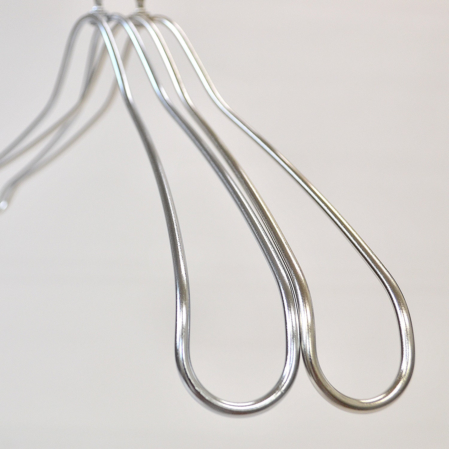 ハンガー本体に梨地加工により凹凸を付けのち、メッキ加工を施すことで光の反射を抑えたマットな質感に仕上げる加工方法となります。