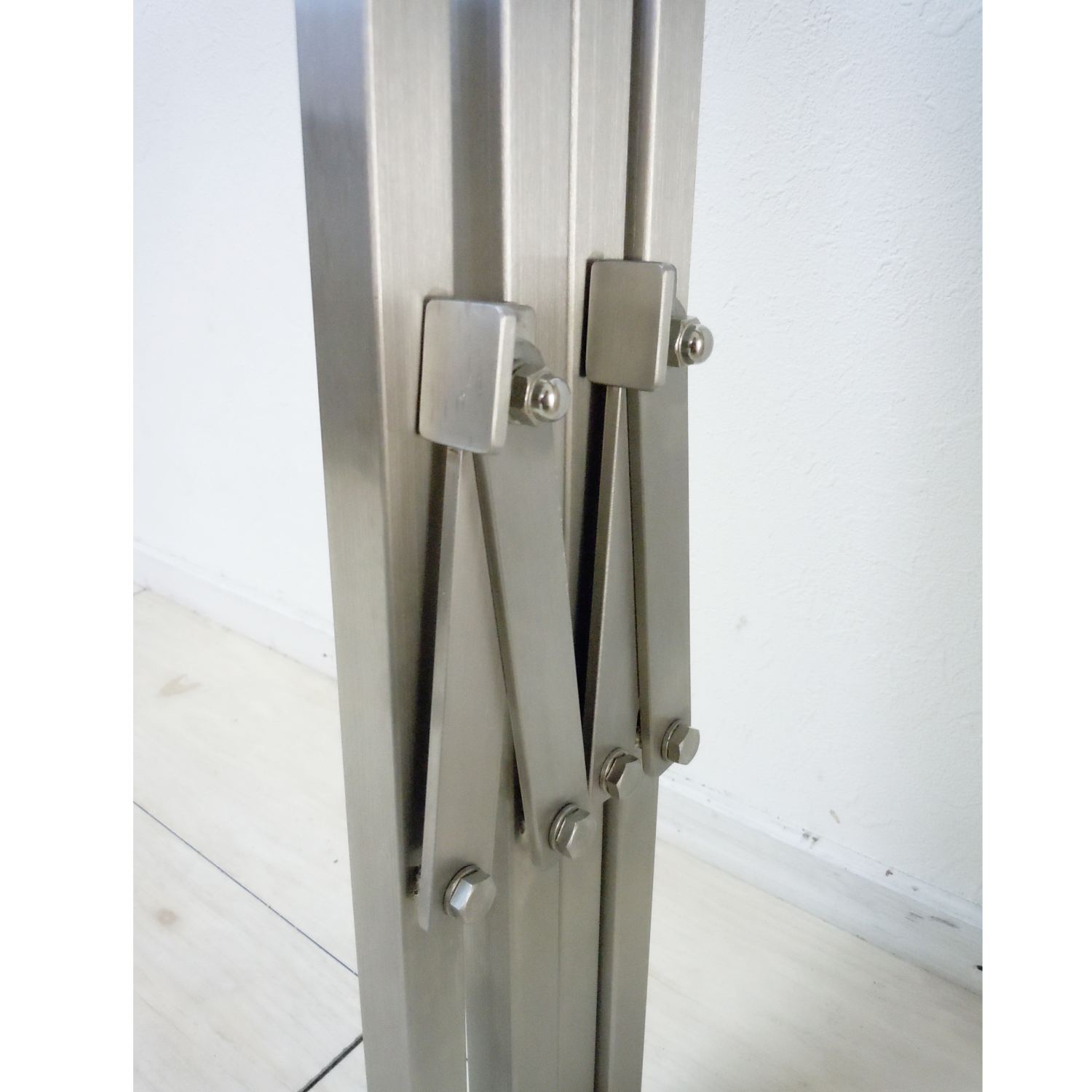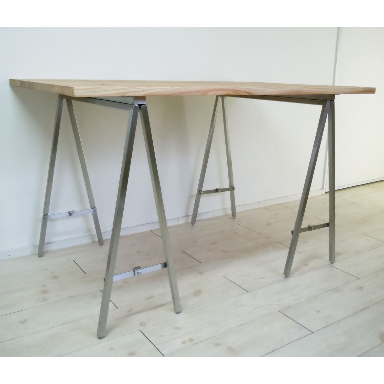 移動に便利な脚部と天板がセパレートタイプのテーブルです。脚部は美しさと強さを兼ね備えたステンレスヘアライン仕様となります。天板はご希望カラー(*カラーはオーダー製造についてをご参照ください)に合わせて製作いたします。